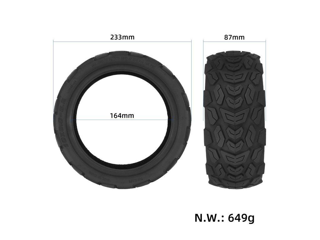 Široká a zosilnená 80/65-6 bezdušová off-road pneumatika pre 10-palcové elektrické kolobežky. Odolná proti opotrebeniu a vhodná do terénu aj na nerovné povrchy. Ideálna ako...