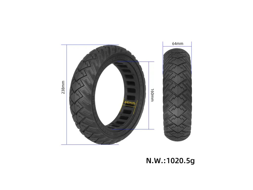 Zosilnená bezdušová mestská pneumatika 250×64 (10″) s ochranou proti prepichnutiu. Vhodná pre Xiaomi 4 Ultra a NAVEE S65 / S65C.
