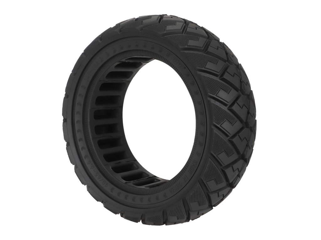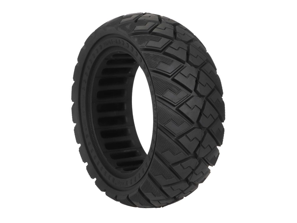 Odolná offroad plná pneumatika 10×2.7–6.5 s vnútornými tlmiacimi otvormi, určená pre elektrické kolobežky. Bezdušové prevedenie eliminuje defekty a znižuje potrebu údržby.