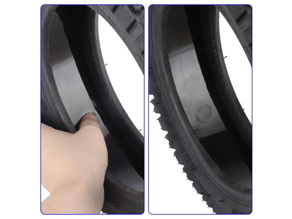 Plná 8″ terénna pneumatika 200×50 (8×2) s vnútorným priemerom 90 mm. Honeycomb konštrukcia odolná voči defektu.