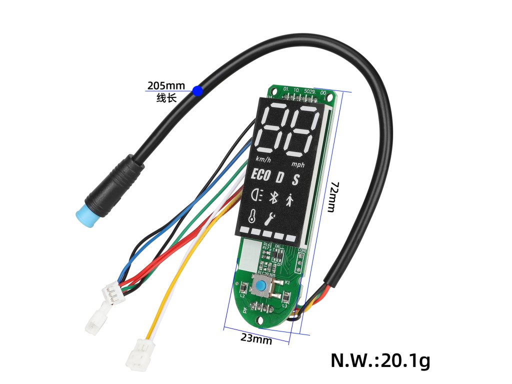 Bluetooth riadiaca doska – dashboard určený pre elektrickú kolobežku Xiaomi M365 Pro. Slúži ako zobrazovací a komunikačný modul s Bluetooth pripojením, vhodný aj ako upgrade...