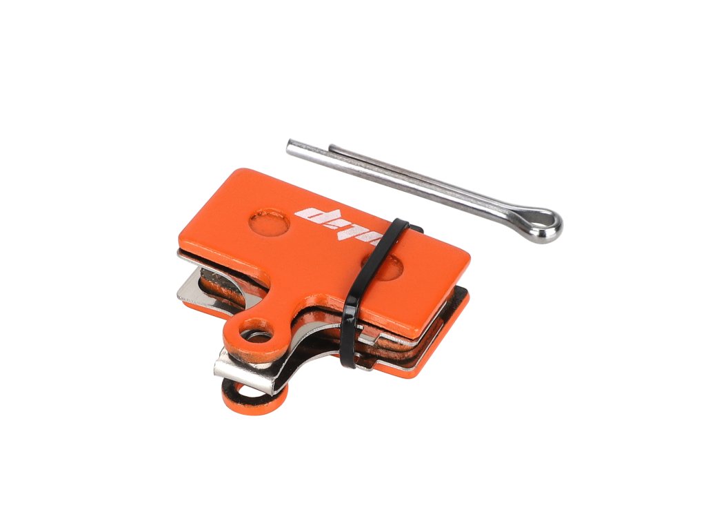 Oranžové keramické brzdové platničky určené pre kotúčové brzdy elektrickej kolobežky Kugoo G2 Pro a bicyklov. Ponúkajú tiché brzdenie, stabilný výkon a nižšie opotrebenie kotúča.