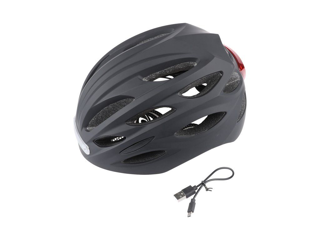 Čierna cyklistická prilba L s predným a zadným LED svetlom – nastaviteľná pre dospelých