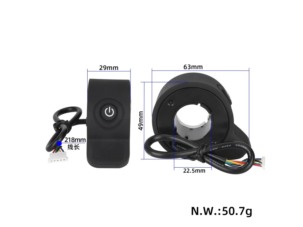 Čierny palcový plyn s prepínačom svetla pre KUGOO S1 Plus
