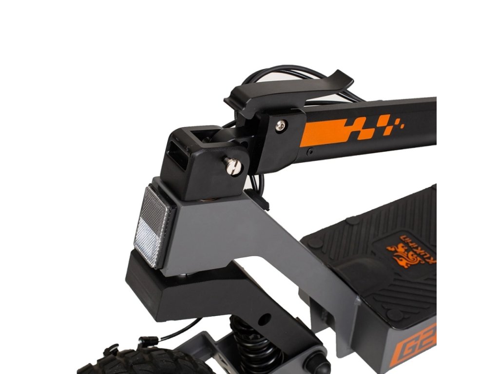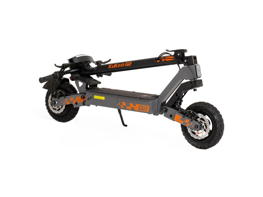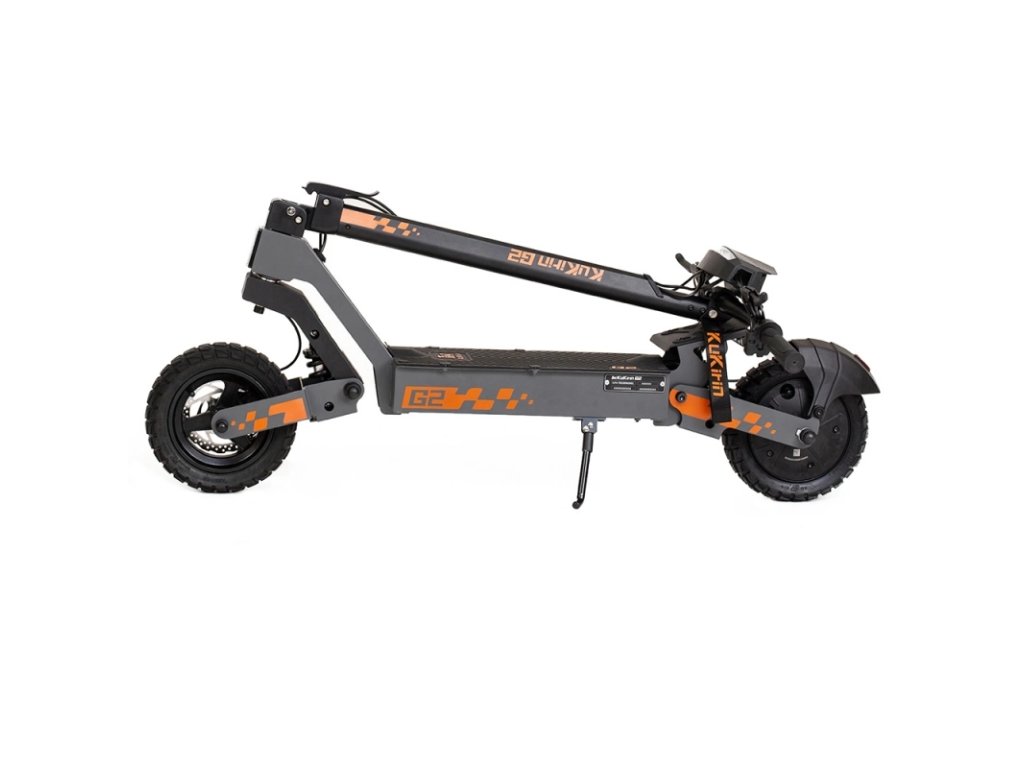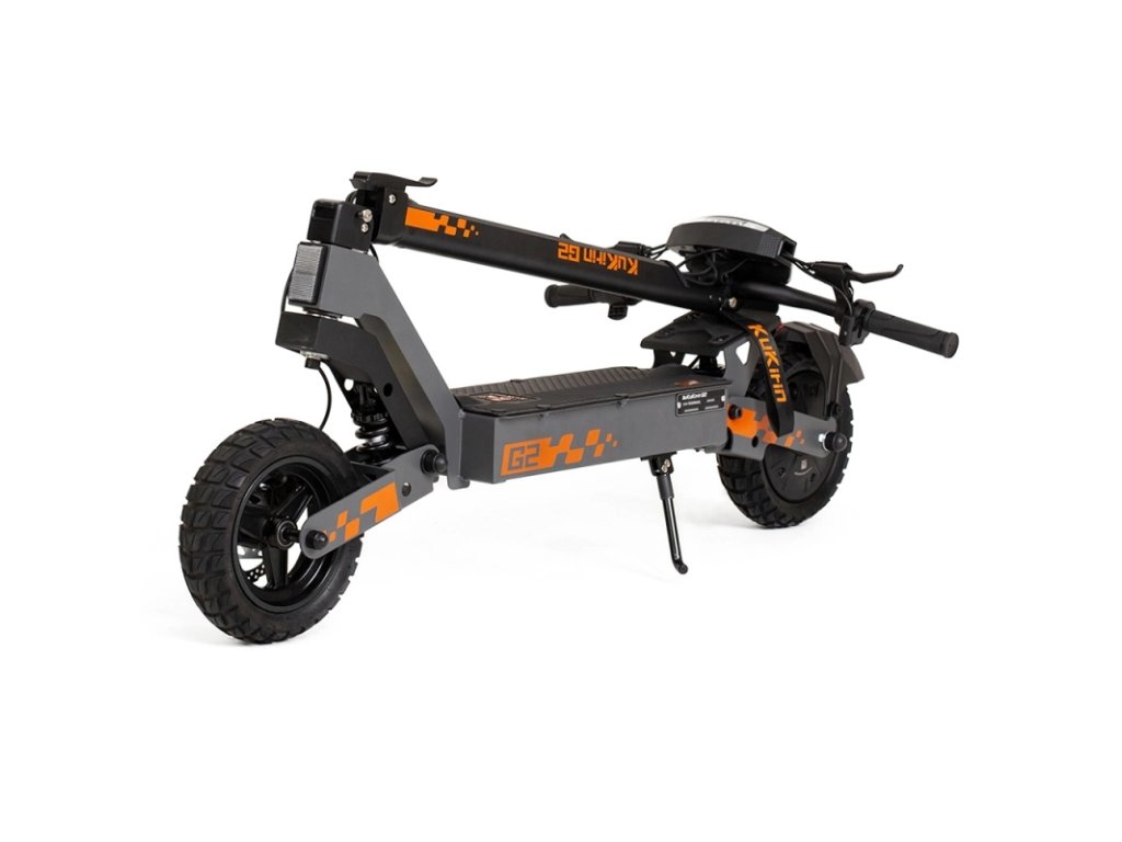 KuKirin G2 je navrhnutý s mechanizmom skladania jedným dotykom, ktorý vám umožňuje zložiť a rozložiť tyče v niekoľkých jednoduchých krokoch. Po zložení je popruh na prednej časti bicykla pripevnený k spodnej doske, kde je umiestnené zadné svetlo, ktoré bezpečne uzamkne rám a zabráni jeho náhodnému rozloženiu počas prepravy, čím zaisťuje bezpečnosť a stabilitu bicykla pri prenášaní. Na základe zaistenia pevnosti a stability tela optimalizuje aj materiálové a konštrukčné prevedenie tak, aby sa čistá hmotnosť výrobku kontrolovala na cca 26 kg, výrobok sa dal ľahko prenášať a skladovať a veľkosť zloženia je kompaktný, čo je veľmi výhodné na dochádzanie do práce a z práce alebo na uloženie do kufra auta.