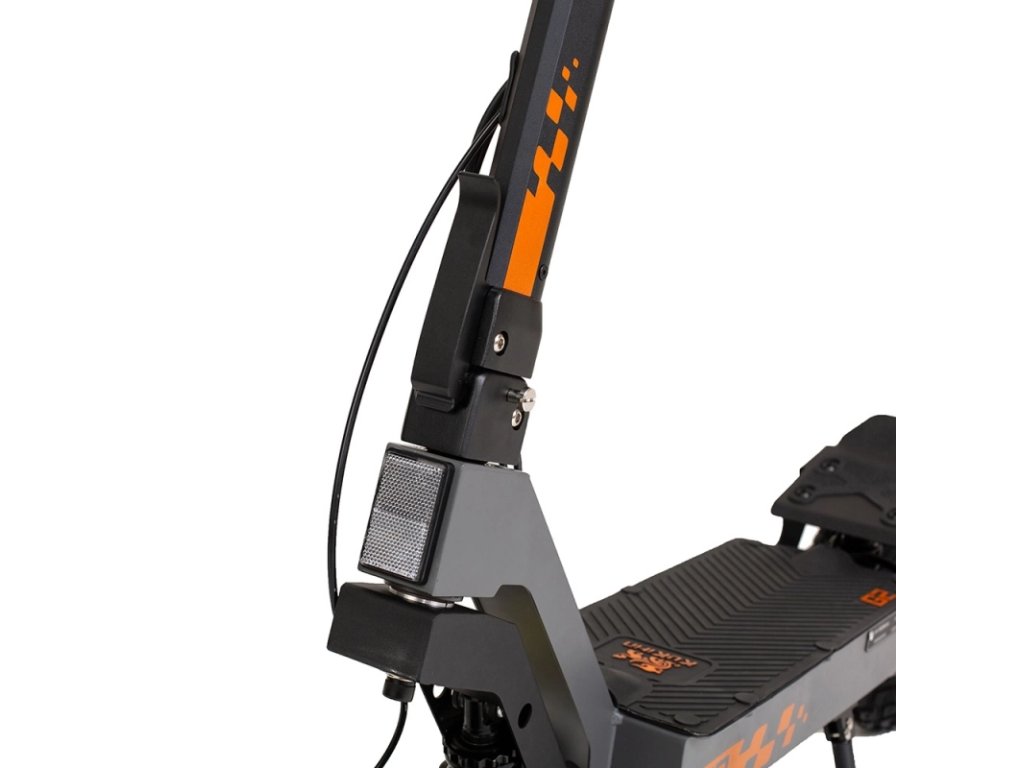 KuKirin G2 je vybavený vysokosvietivým svetlometom so 60° uhlom osvetlenia, ktoré zaisťuje široký rozsah osvetlenia vozovky, čo vám umožní jasne vidieť cestu pred sebou v noci alebo v prostredí so slabým osvetlením, čo vám zaručí bezpečnú jazdu. Má tiež štyri smerovky, z ktorých dva sú namontované vpredu a dva vzadu. Tento dizajn umožňuje, aby boli vaše zámery odbočenia jasne oznámené ostatným účastníkom premávky, čím sa znížia potenciálne dopravné riziká. Nechýba ani zadné svetlo a brzdové svetlo, aby ste mali počas jazdy vždy pokoj.