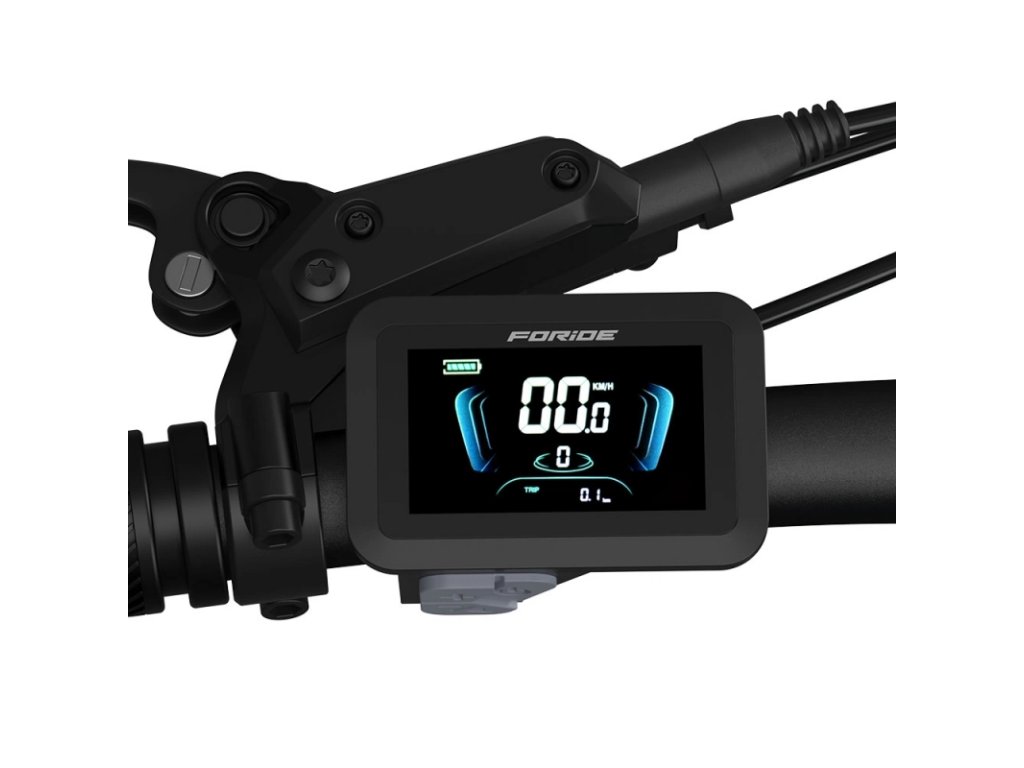 Prehľadný 2,6" LCD displej zobrazuje všetky kľúčové informácie v reálnom čase – rýchlosť, stav batérie, zvolený asistenčný režim, prejdenú vzdialenosť či aktivovaný walk mode. Pomocou ovládania môžeš prepínať medzi 5 úrovňami asistencie (12 až 25 km/h), aktivovať svetlá alebo zvoliť režim asistovanej chôdze (6 km/h).