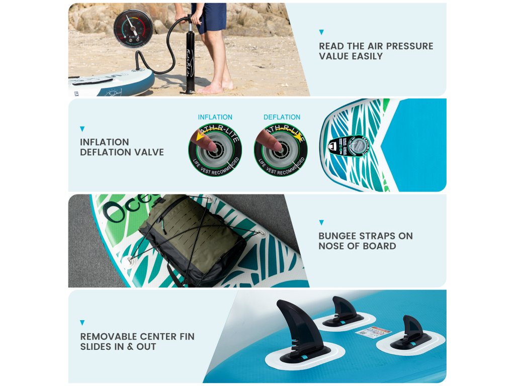 Produkt je vybavený ultraľahkým PVC, o 35 % ľahším ako iné podobné produkty, čím tvorí trvanlivú superdosku odolnú voči korózii. Je tiež vybavený mäkkými protišmykovými podložkami EVA pre pohodlie a bezpečnosť počas dlhšieho státia.