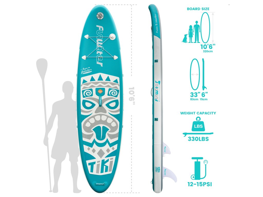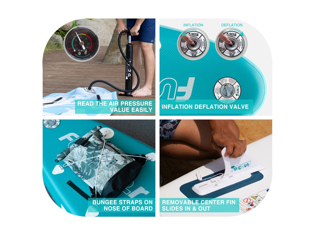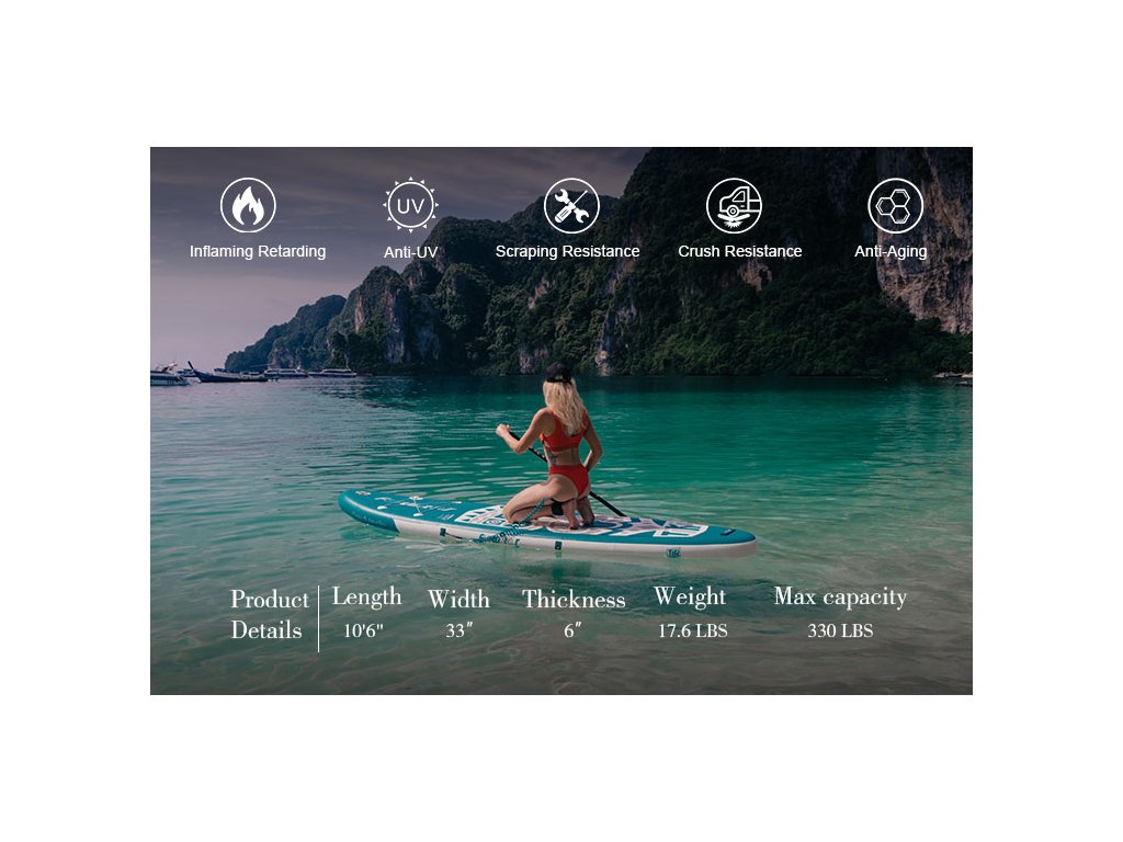 Vodný paddleboard je univerzálny a slúži pre začiatočníkov, ale aj profesionálnych surferov. Výrobok je vyrobený z 15 cm silného kartáčovaného vzduchového senzora, čo je v súčasnosti najtvrdší materiál v obore. Hladký dizajn tvaru a kompletné príslušenstvo vám zaistí najlepší užívateľský zážitok.