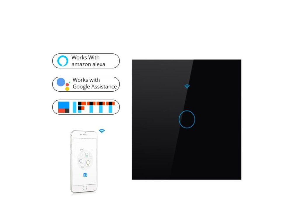 Kressman dotykový WiFi vypínač na 1 okruh- kompatibilný s Tuya a Smart Life- čierny B01K