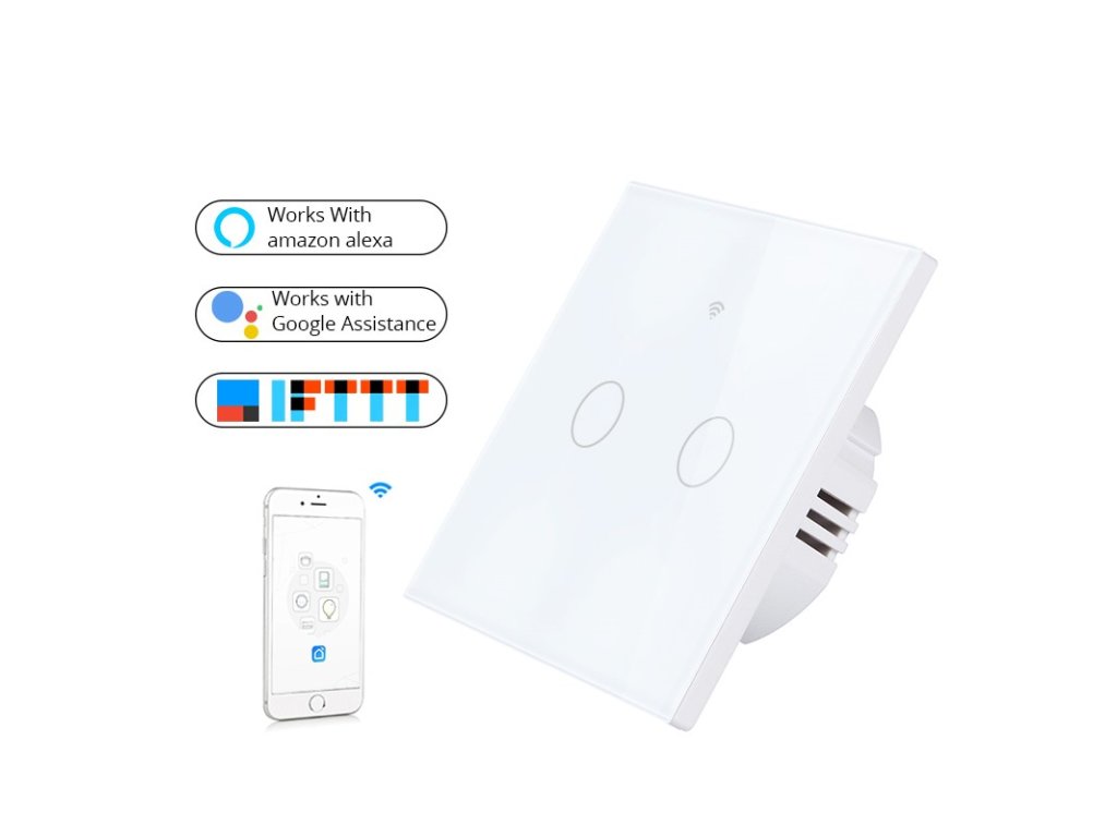 Wi-Fi inteligentný vypínač v luxusnom prevedení, ktorým môžete ovládať svetlá alebo iné elektrické zariadenia hneď niekoľkými spôsobmi nezávisle na sebe a zmena stavu vypínača sa prepíše do všetkých aplikácií, ktoré ho ovládajú. Dotykový vypínač je možné ovládať priamo dotykom, alebo pomocou aplikácií v mobilnom telefóne (iOS aj Android). Ďalšou možnosťou je ovládanie hlasom za pomoci Google Home, Google Assistant, Amazon Alexa.