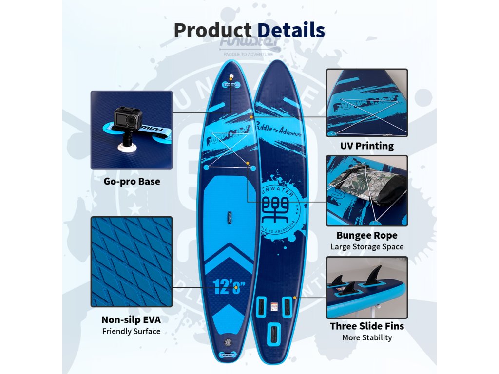 Paddleboard FunWater BlueBase je ideálny pre tých, ktorí hľadajú stabilitu, nosnosť a kvalitu v jednom. Vďaka svojim nadštandardným rozmerom a robustnému spracovaniu je vhodný ako pre začiatočníkov, tak aj pokročilých paddleboardistov. Či už sa chystáte na jazero, rieku alebo mierne morské vlny, tento paddleboard vám poskytne spoľahlivý výkon.