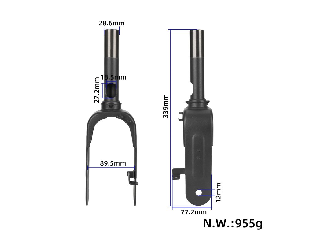 Vidlica je vyrobená z odolných materiálov, ktoré odolávajú bežnému opotrebeniu a tlakom pri jazde. Originálne diely pomáhajú predchádzať nadmernému voľnému hýbaniu, zlepšujú celkovú ovládateľnosť a predlžujú životnosť kolobežky.