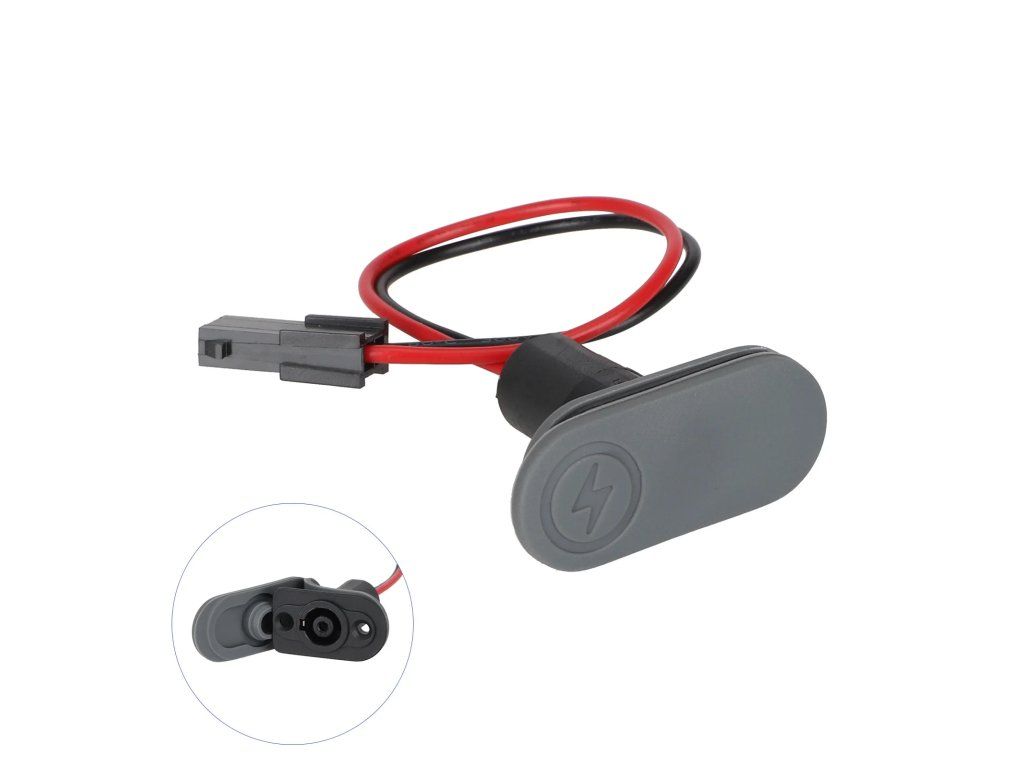 Nabíjací port s integrovaným káblom a vodotesnou krytkou určený pre elektrickú kolobežku Xiaomi 4 Pro. Slúži ako náhradný diel na ochranu nabíjacieho otvoru pred vodou, prachom...