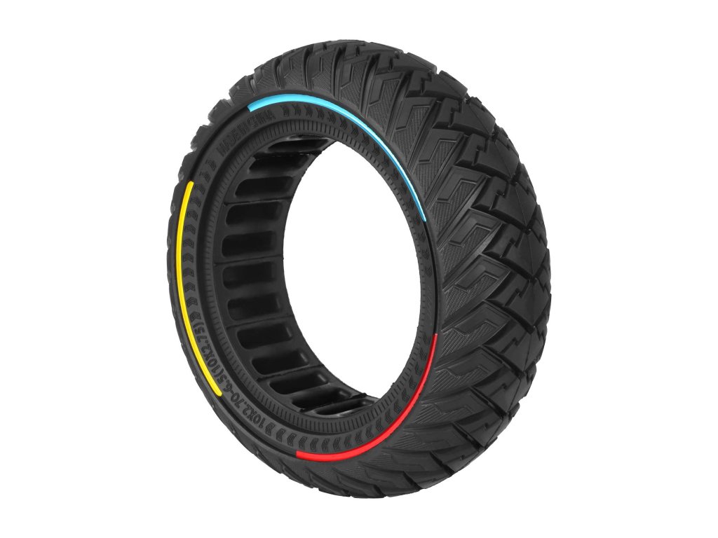 Plná offroad pneumatika 60/65-6.9 s tromi farebnými kruhmi určená pre elektrické kolobežky Segway Ninebot Max G2 a G65. Bezdušové prevedenie bez rizika defektu, s protišmykovým...
