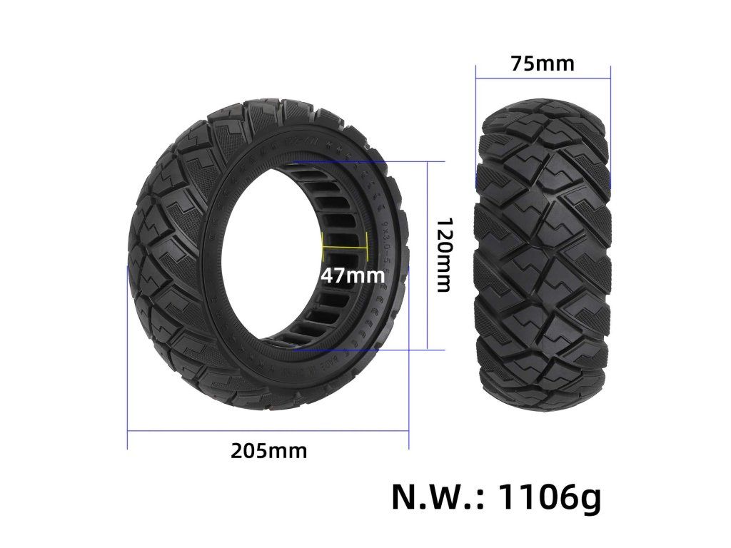 Táto 9-palcová plná pneumatika 9×3.0 je určená pre nový model Kukirin G2 Pro, pričom poskytuje maximálnu odolnosť a terénne vlastnosti. Dizajn all terrain zaisťuje dobrú trakciu na viacerých povrchoch – od asfaltu, cez štrk, až po mierny off-road.