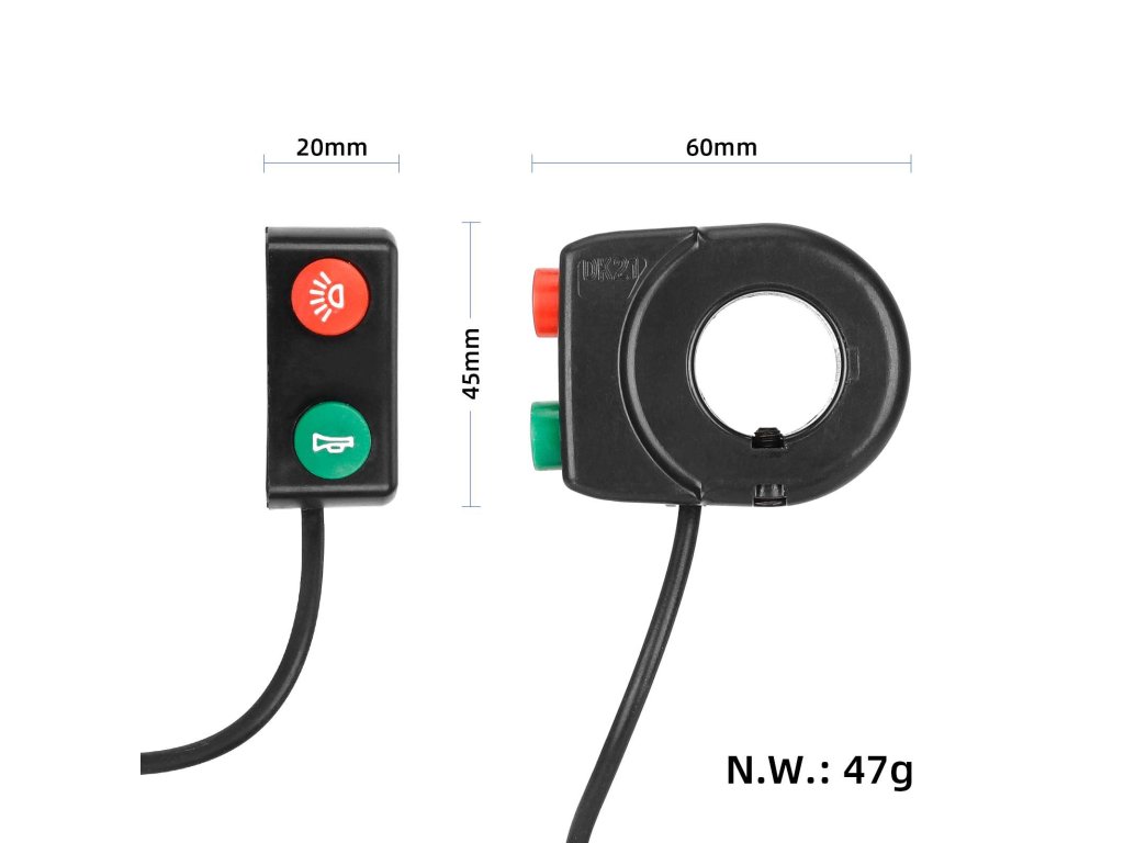 Tento kombinovaný prepínač svetla a klaksónu je navrhnutý pre maximálne pohodlie a bezpečnosť pri jazde na elektrickej kolobežke. Umožňuje rýchle ovládanie dvoch dôležitých funkcií bez nutnosti púšťať riadidlá.