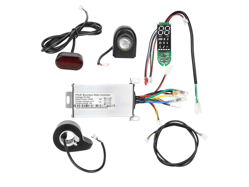 Controller zabezpečuje riadenie výkonu motora, spracovanie signálov z plynu a brzdy a napájanie svetiel aj displeja.