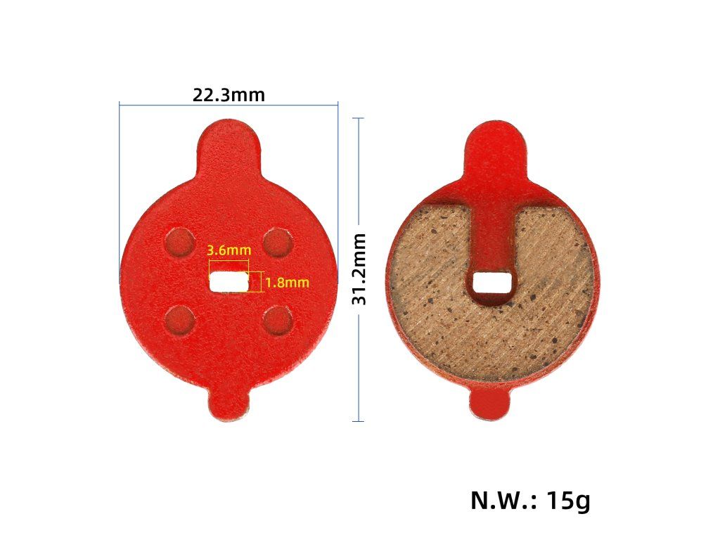 Červené živicové (resin) brzdové platničky kompatibilné so systémom SHIMANO ZEE M640. Určené pre kotúčové brzdy bicyklov a elektrických kolobežiek, ponúkajú tiché brzdenie,...