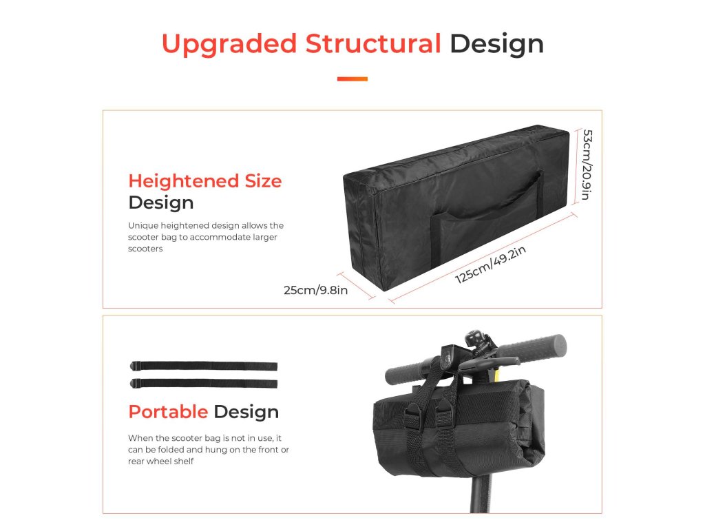 Odolná a priestranná prepravná taška pre elektrokolobežky s rozmermi 125 × 45 × 25 cm, vhodná pre Xiaomi M365/Pro/1S/Pro2/MI3/MI4, Segway G30/F20/F30/F40 a ďalšie modely....