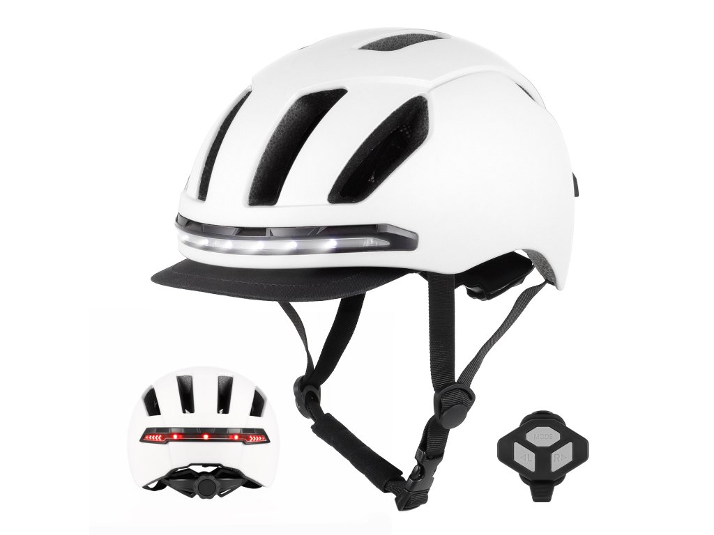 Smart prilba s LED smerovkami a diaľkovým ovládaním – biela