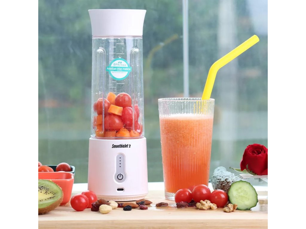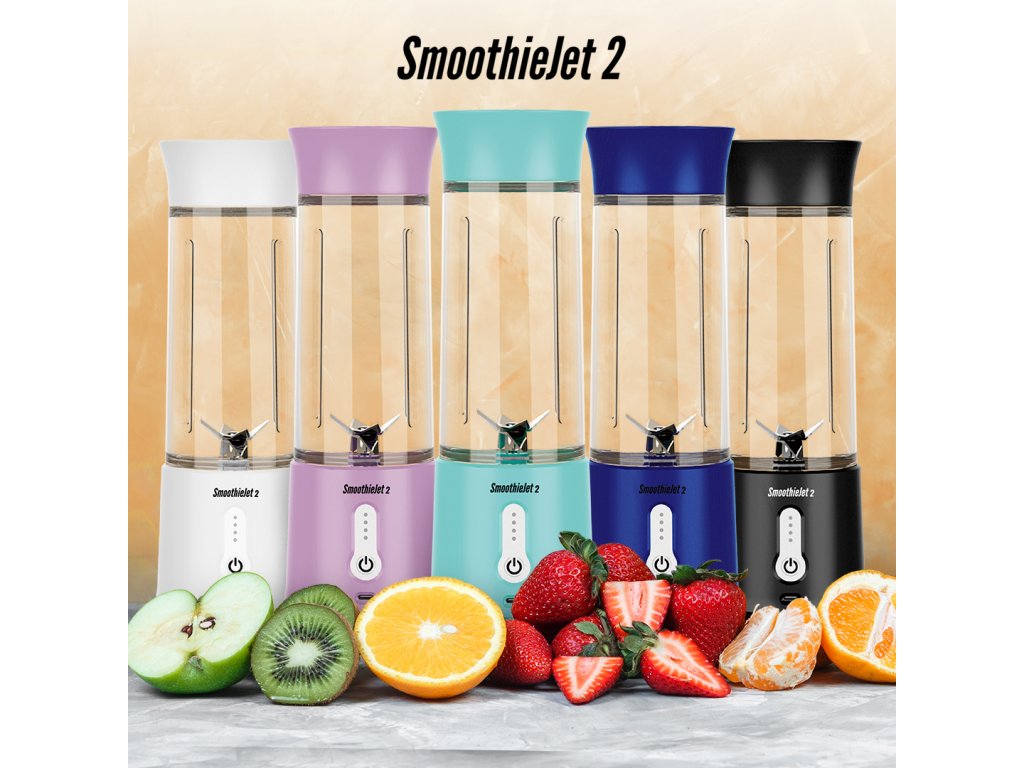 SmoothieJet 2 prenosný USB smoothie mixér 500 ml je ideálny pre každého, kto miluje čerstvé nápoje na cestách. V porovnaní s pôvodnou verziou prináša nový model väčší objem 500 ml, čo vám umožní pripraviť ešte viac vašich obľúbených smoothie, proteínových drinkov alebo detskej stravy.