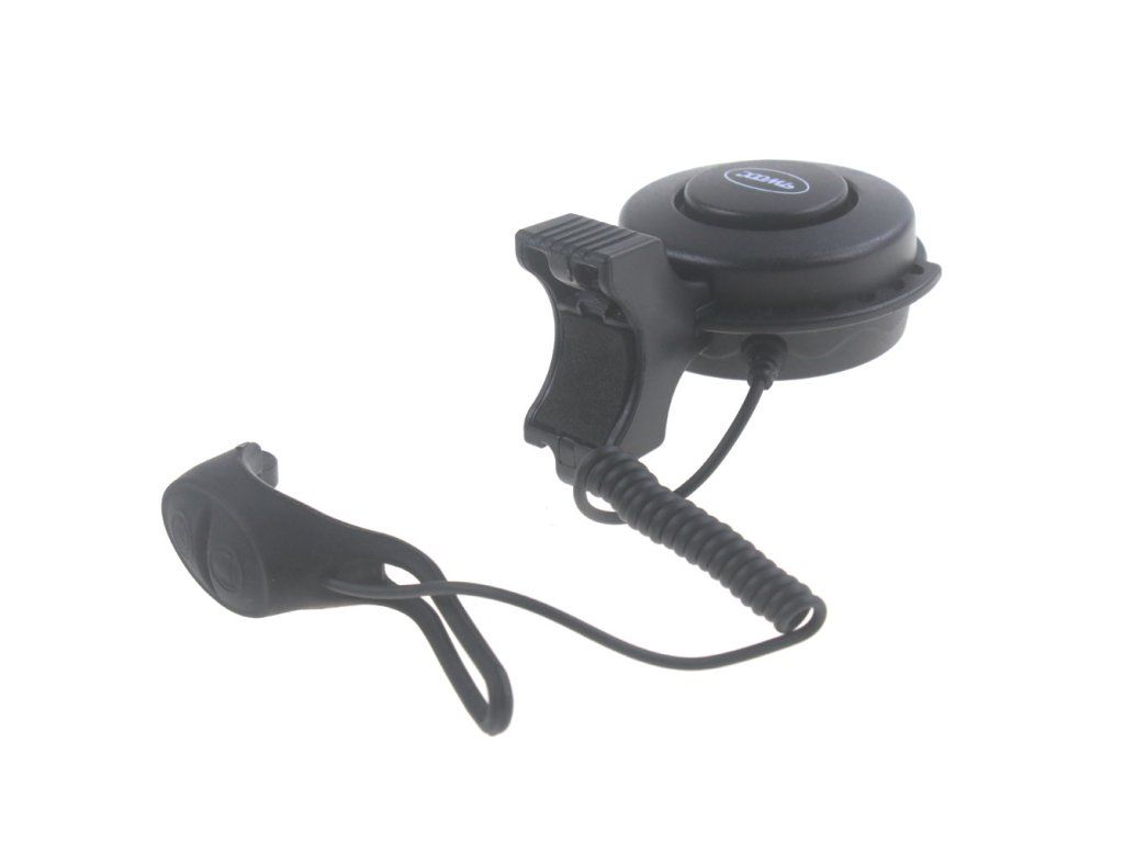 Klaksón je vybavený elastickým držiakom, ktorý sadne na väčšinu riadidiel bicyklov a elektrických kolobežiek. Ovládacie tlačidlo je spojené káblom, takže ho môžete umiestniť presne tam, kde vám najlepšie vyhovuje.