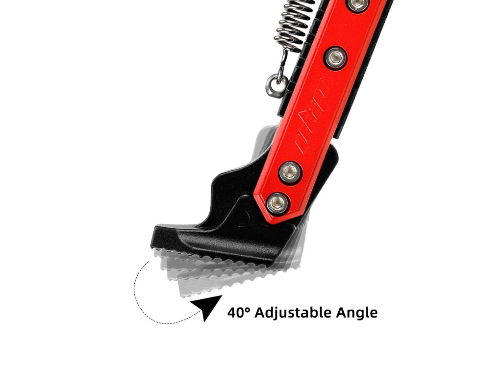 Tento stojan umožňuje ľahké nastavenie výšky, takže ho môžete presne prispôsobiť konkrétnemu modelu kolobežky a typu terénu. Správne nastavenie zabezpečí, že kolobežka pevne stojí bez prevrátenia, či už parkujete na hladkej cykloceste alebo na nerovnom chodníku.
