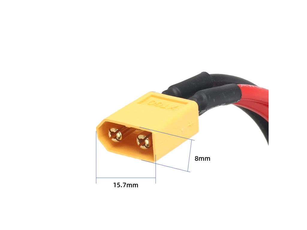 - Konektory: 1× XT60 samec → 2× XT60 samica