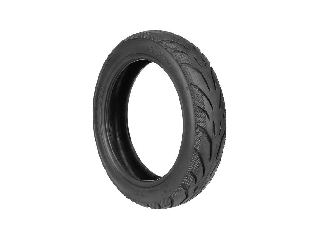 Široká bezdušová pneumatika 10×3.0-6.5 pre elektrické kolobežky Kugoo G-Booster a G2 Pro. Zabezpečuje lepšiu stabilitu, trakciu a komfort jazdy.