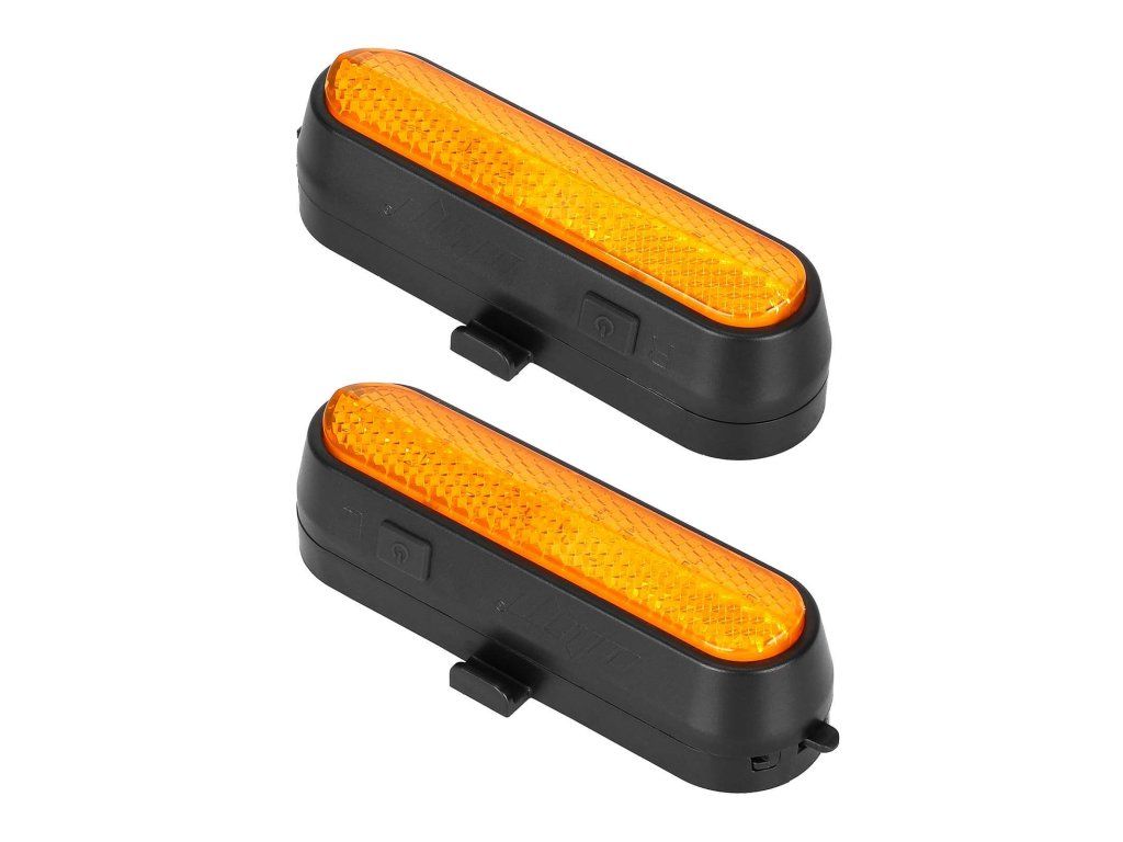 Sada 4 žltých nabíjateľných LED smerových svetiel s diaľkovým ovládaním, určená pre bicykle, elektrické kolobežky a iné vozidlá. Zvyšuje viditeľnosť, bezpečnosť a signalizáciu...