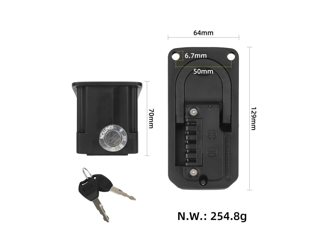 Zámok je určený na výmenu nefunkčného alebo poškodeného zámku batérie. Po montáži zabezpečí stabilné uchytenie batérie a zvýši ochranu elektrického bicykla proti krádeži batérie.